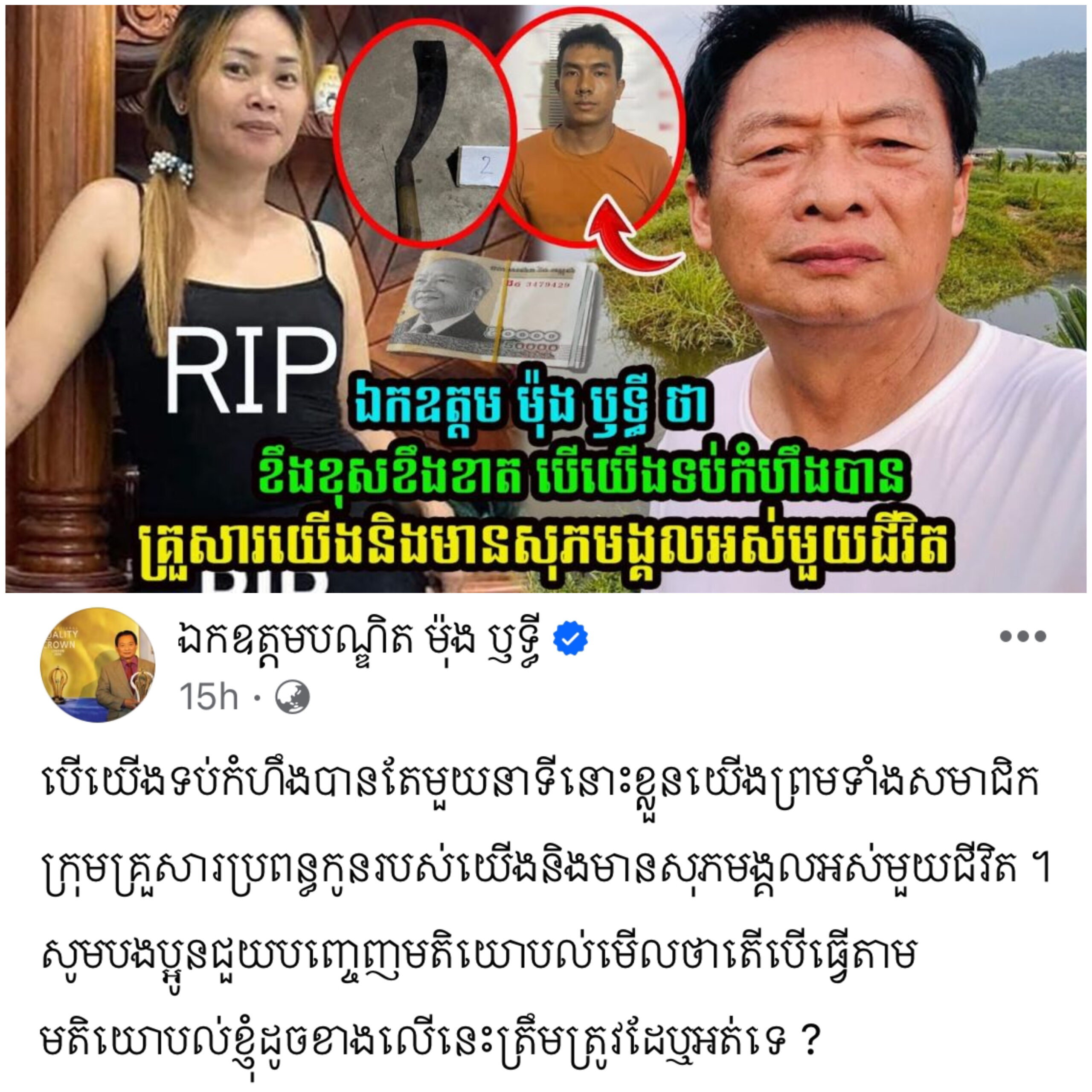 Continue ReadingPost Views: 126 ឯកឧត្តម ម៉ុង ឫទ្ធី លើកឡើងចំៗថា…
